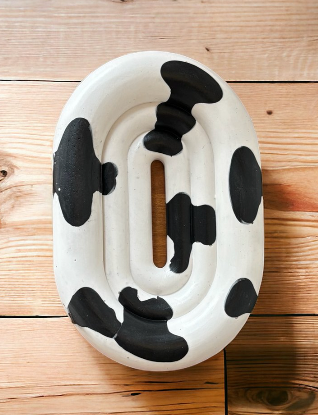 Make hand washing a full on rave with these cow print soap dishes. Also work well to hold sponges, dish brush, spatula, etc.