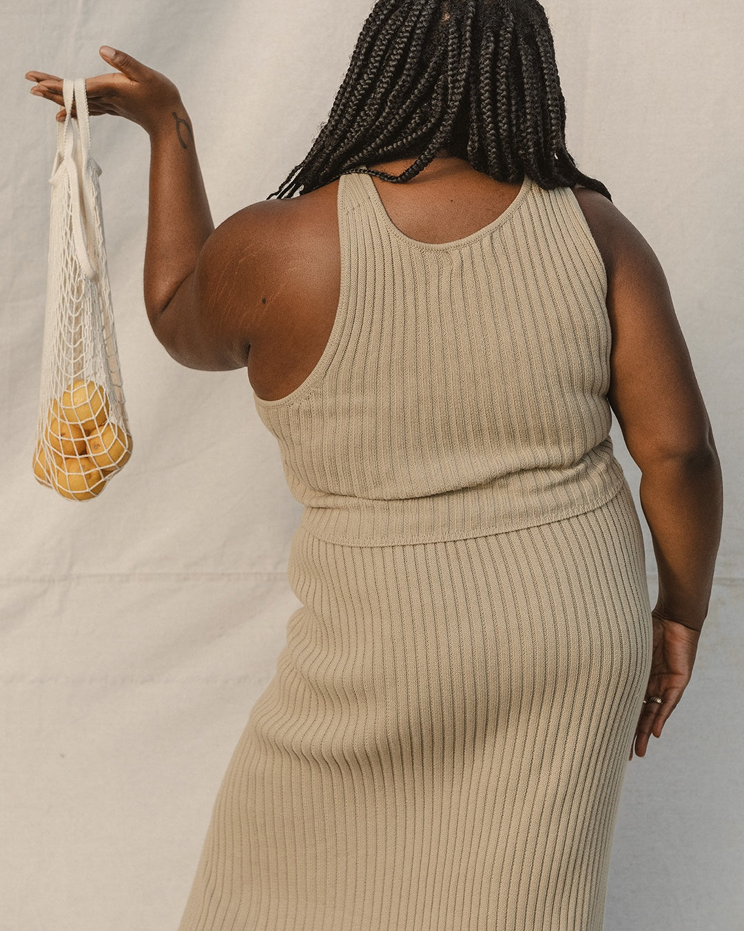 This top and skirt set is a knitwear dream for many bodies to enjoy. Flexible, breathable, sustainably made in Peru and created to work with everything in your closet. I wanted to make something edgy enough that felt different but timeless and comfortable enough that you’ll reach for one or both pieces again and again. I hope you connect with them in that same way.
