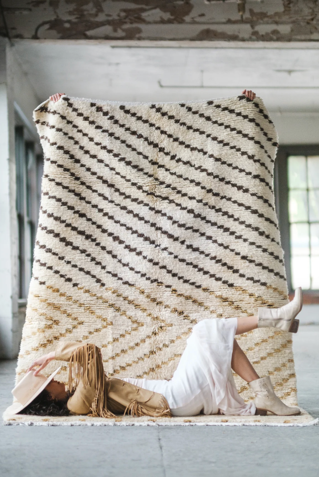 This piece was was sourced ethically from female weaving cooperatives in Morocco and is aged to perfection. Berber rugs are touchstones, telling the story of the place and artisan that wove them. They hold a rich mythology and a living relationship, ushering you to drop into a state of remembering. These are heirloom pieces, encapsulating sensory positive design to create a sense of sanctuary within your home. We have a deep value and appreciation for imperfection. We hope you enjoy these touchstones as much as we do.