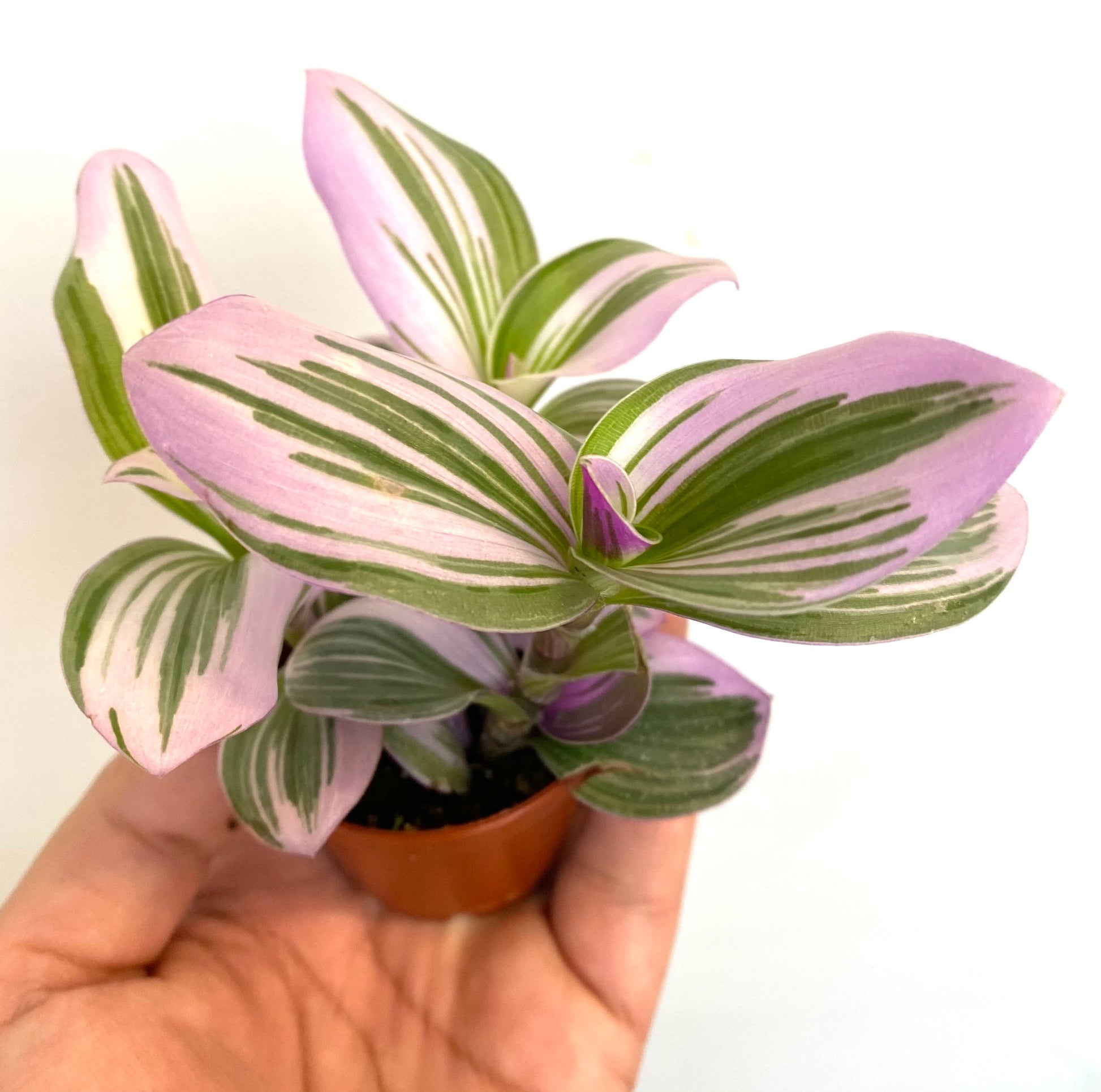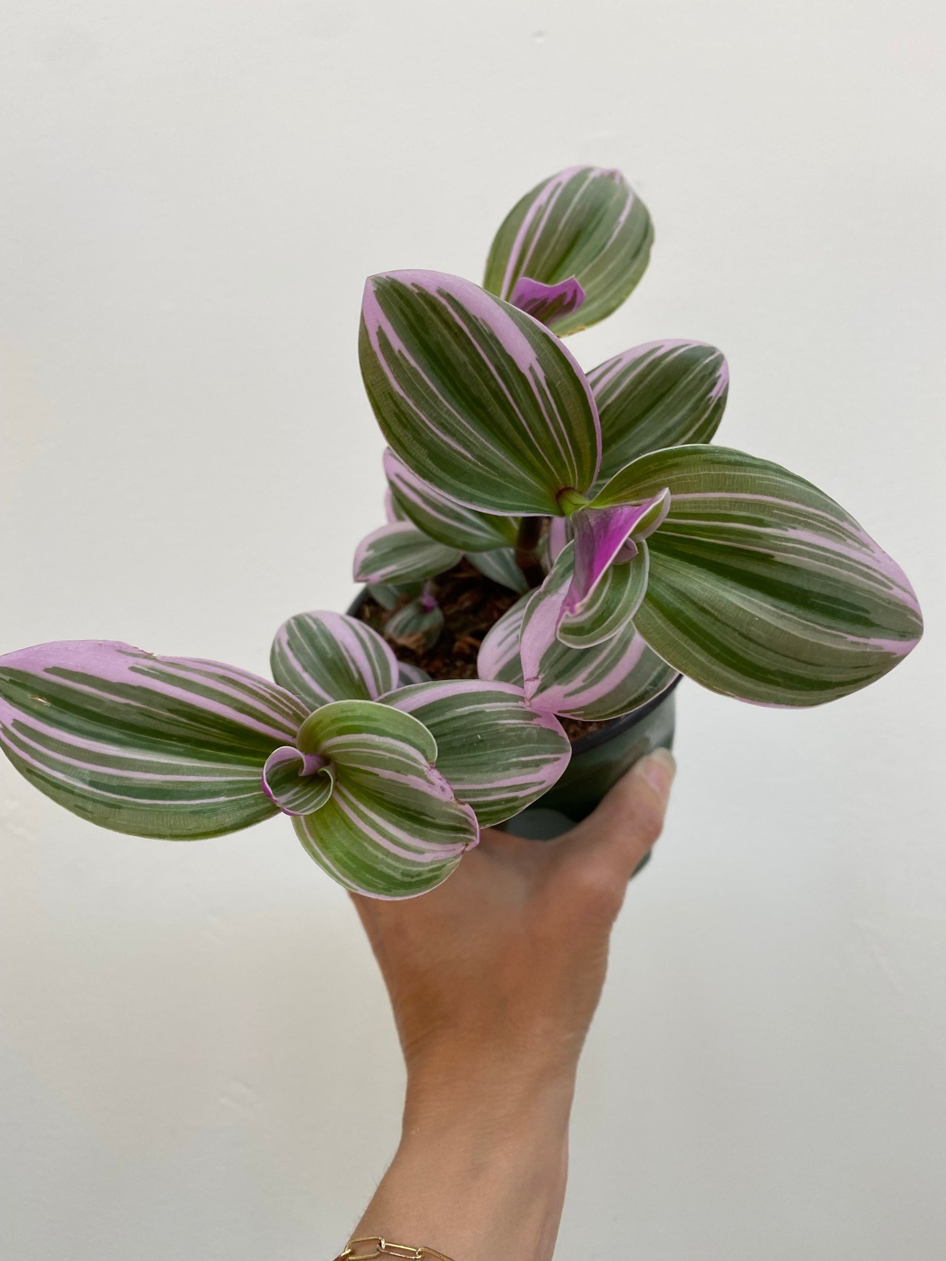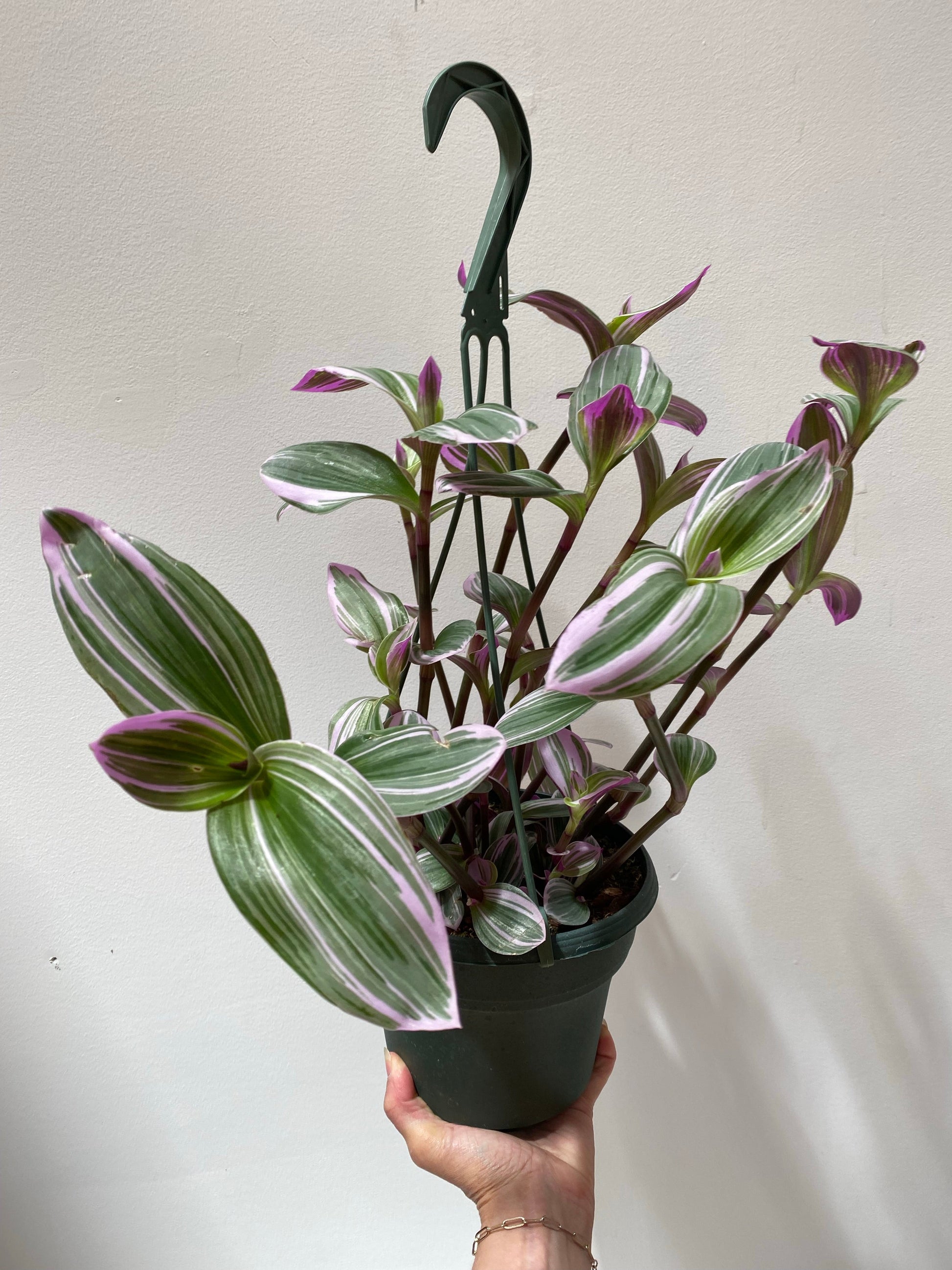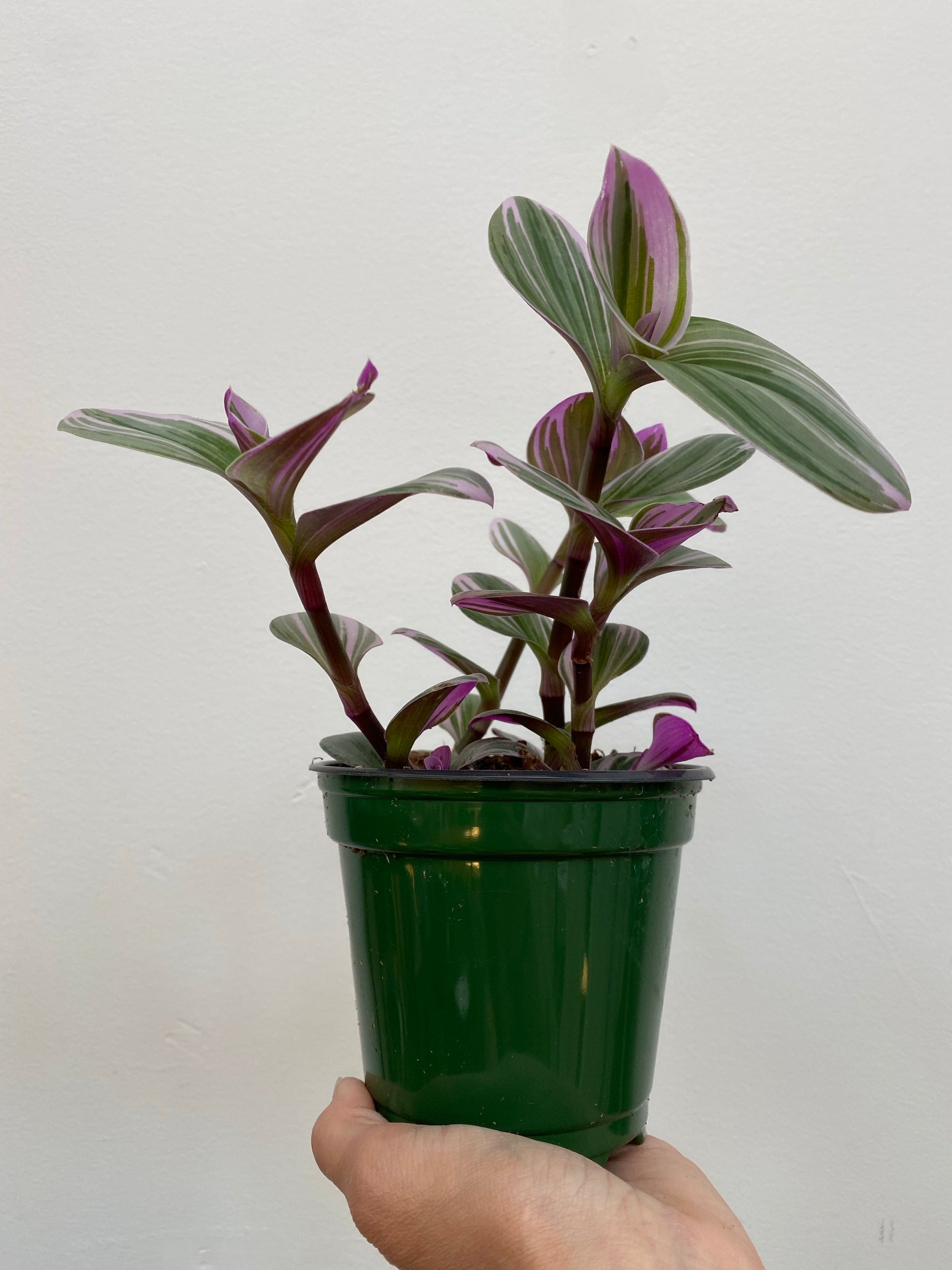 Tradescantia Nanouk, also known as Fantasy Venice, has pretty bright green, pink & purple, fuzzy-ish leaves growing on chunky stems. This is a new variety grown by cross-pollinating two selected seedlings of Tradescantia albiflora in the Netherlands. A great choice for beginners -